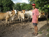 amb unesEl primer dia que vam estar sols vam anar amb en Ramón, el cap de la casa, a uns terrenys que tenien força lluny, per recollir unes quantes vaques que tenien escampades pels camps, triar-les i sanejar-les a base d'injeccions d'oli d'oliva i desinfectant (creolina), xeringues gegants, sense cap mena d'higiene però