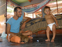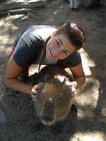 Per si no ho sabeu, l'animal pelut que surt amb l'Eli i en una altra foto amb en Joan i la nena de la casa és un capibara (un rossegador gegant molt abundant a los llanos i al zoo de Barcelona). Aquests dos en qüestió eren mascotes de 2 famílies veïnes del que ha sigut casa nostra aquests dies.
