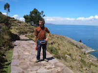 De nou creuem una fromtera: ja som a Bolívia! El primer lloc que visitem es Copacabana, també a la vora del titicaca, des d'on es poden visitar l'illa del sol i de la lluna. Nosaltres només anem a l'illa del sol, que te unes vistes extraordinàries. Estem a l'illa només 2 dies, però en tenim prou per fer-nos una idea de l'illa. Tenim la sort de veure una festa del final de curs de l'escola, on hi ha músics tocant i senyores (creiem que eren les senyores dels professors) decorades amb menjar de tota mena que la gent els hi oferia en senyal d'agraiment. també vam fer una bona caminada fins a l'altra punta de l'illa, on vam visitar ruïnes. Cal dir que per primera vegada vam ser protagonistes d'una estafa, ja que ens van vendre un bitllet per agafar el baixell per tornar que era fals!! Per sort, el cost del bitllet era de 1,5 eurus per persona.